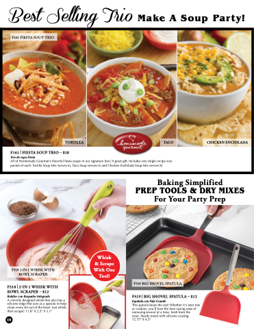 All of Homemade Gourmet's flavorful fiesta soups in our signature box! A great gift. Includes one single recipe size packet of each: Tortilla Soup Mix (serves 6), Taco Soup (serves 6) and Chicken Enchilada Soup Mix (serves 8).