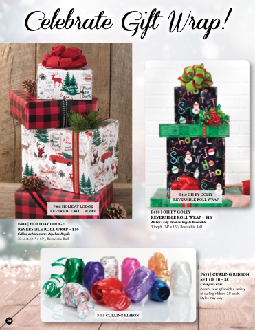 F408 | HOLIDAY LODGE REVERSIBLE ROLL WRAP – $10 Cabina de Vacaciones Papel de Regalo