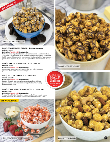 This delicious blend of strawberry popcorn and white chocolate drizzle makes you dream of a summer favorite – Strawberry Shortcake. (13 oz.)